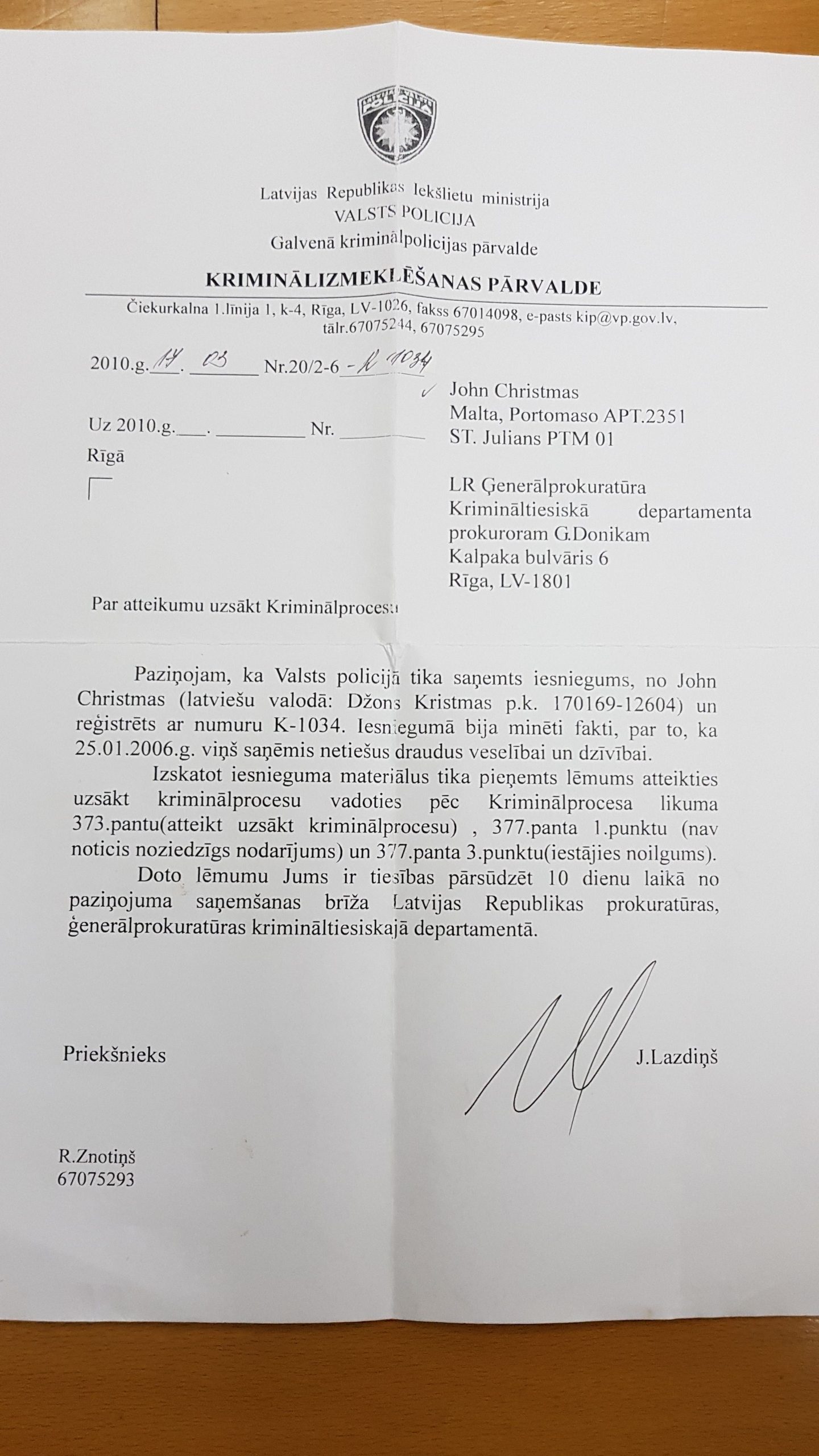 Some of the information on Lawless Latvia was on dissident website Kargins.com, however the Oligarch-controlled government forced that website offline.